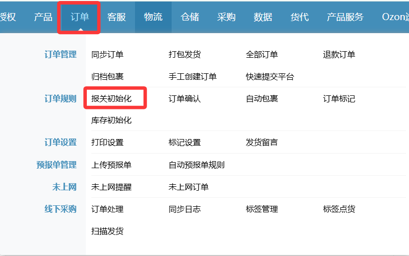 路径:【订单】——【订单规则】——【报关初始化规则】