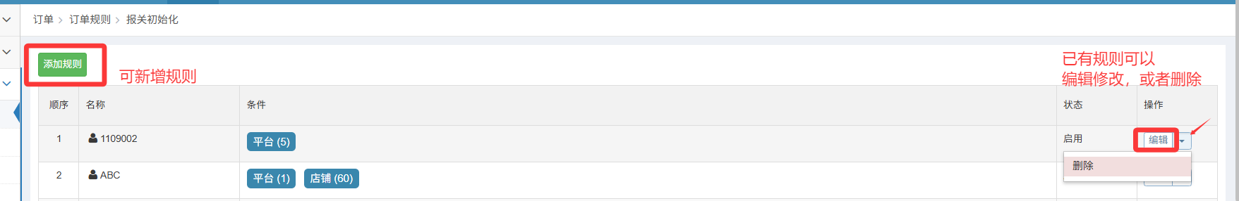 添加新的报关初始化规则或者修改当前的规则
