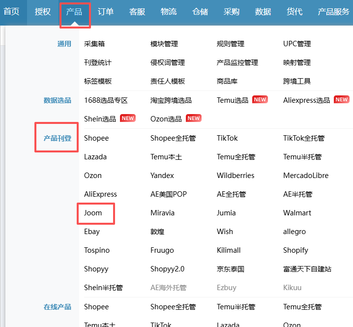 1、创建产品 路径:【产品】——【产品刊登】——【Joom】