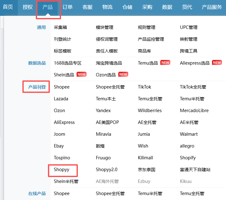(1) 【产品】--【shopyy】--【草稿箱】打开,创建产品,编辑产品,保存发布即可。如下图