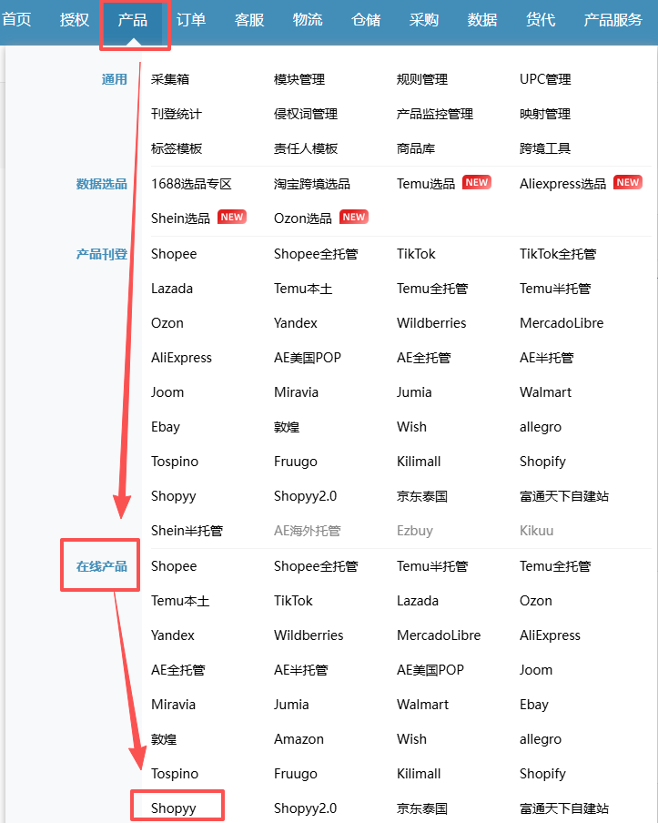 2、芒果【Shopyy在线产品】即shopyy店铺后台的产品。
