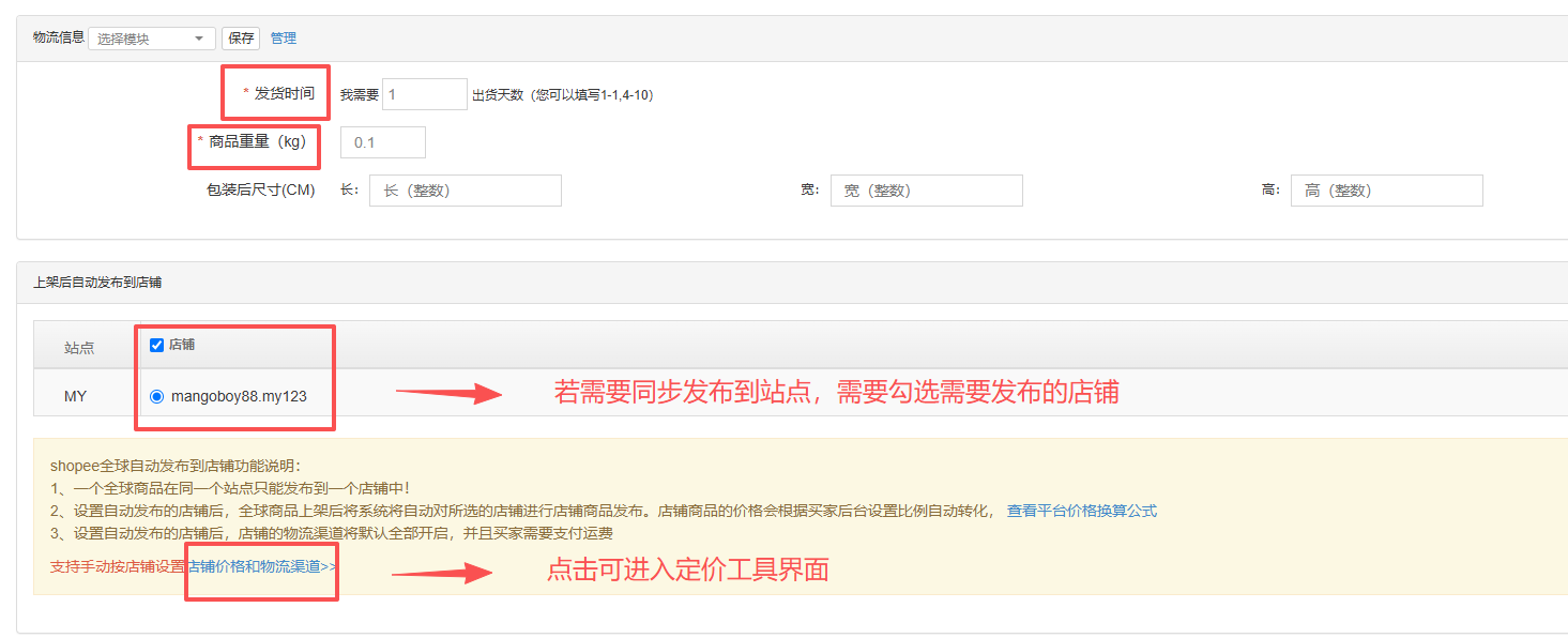 非Shopee跨境店铺:使用对应站点语言进行产品刊登,发布即可(物流方式需要先在虾皮后台开启)