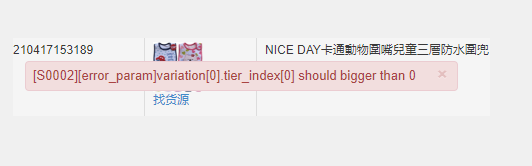 刊登提示:variation[0].tier_index[0] should bigger than 0
