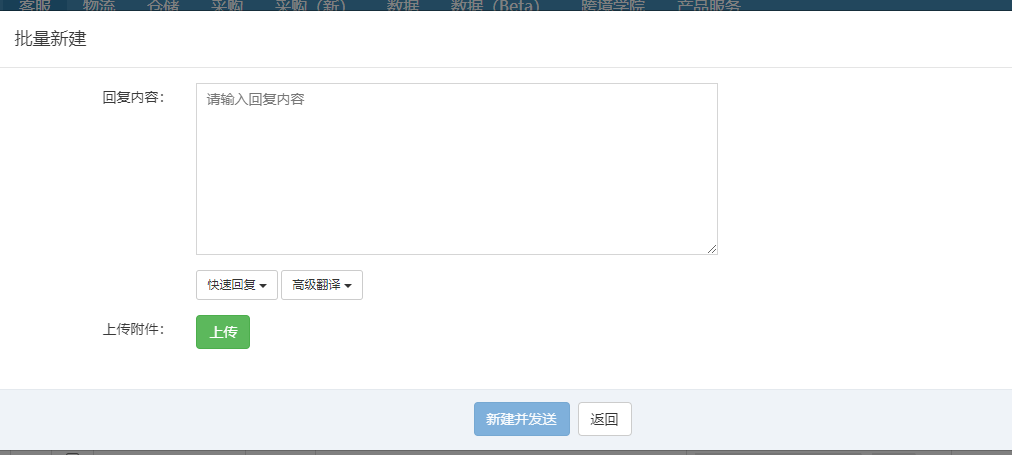 支持批量回复,单个回复,上传附件,文字翻译等。