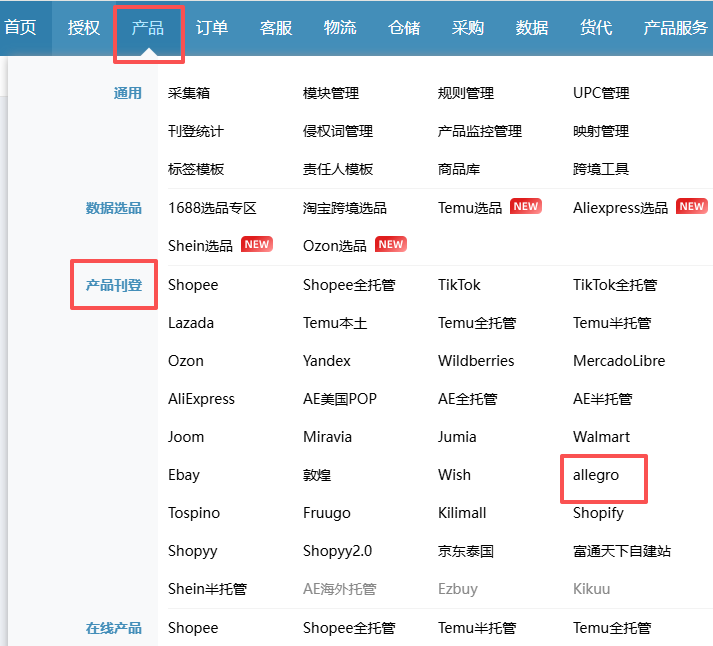 支持allegro产品刊登。