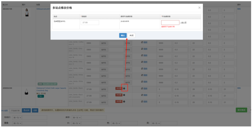 ③获取平台推荐不含邮价格需要先把产品SKU重量尺寸填写好