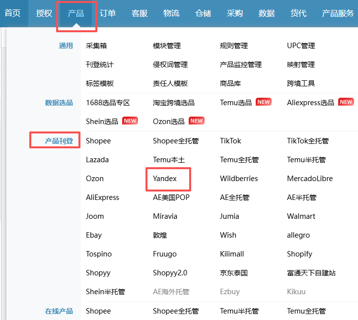 1、【产品】—>【产品刊登】—>【Yandex】,手动创建,填写好对应的产品信息数据,保存,发布即可。如下图