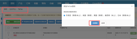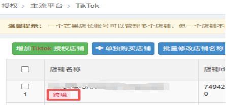 4.店铺为升级后状态时,TikTok店铺授权-店铺名称下方会显示“跨境”。
