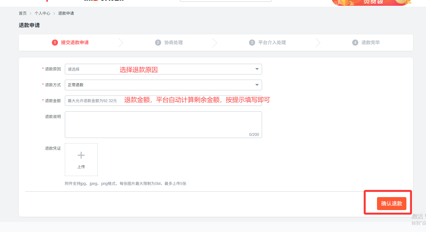 2、点击【订单详情】进去,点击【申请退款】按钮,如下图