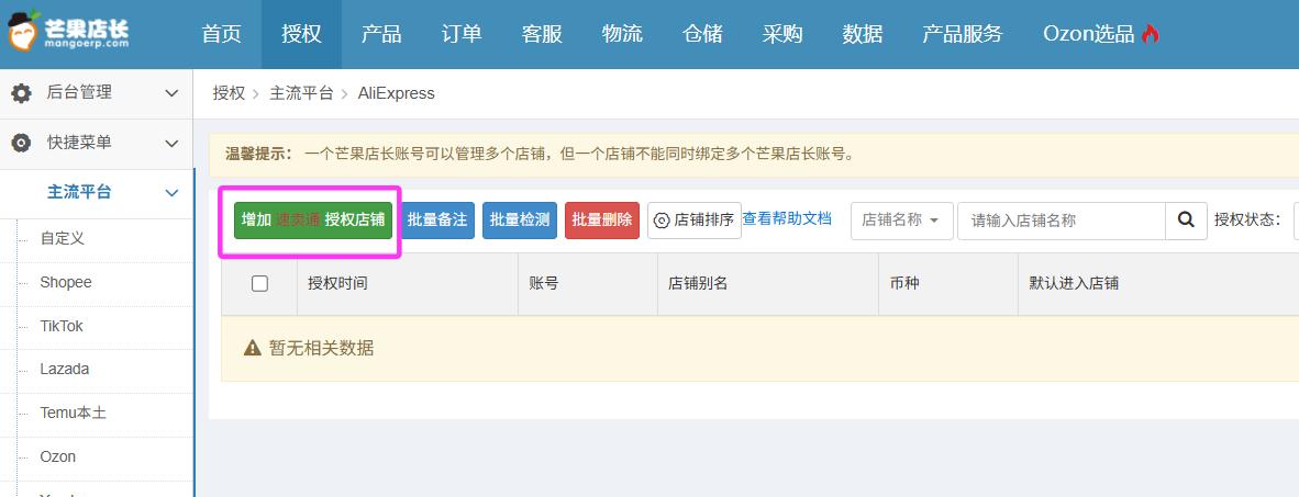 AliExpress授权视频教程请点击——芒果店长之AliExpress店铺授权教程