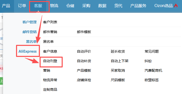 路径:【客服】-【AliExpress】-【自动刊登】